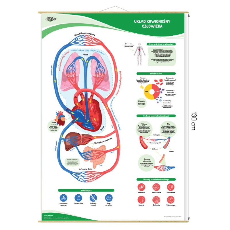 Wall Chart: Human Circulatory System, 90 × 130 cm, Laminated, with Wooden Rods